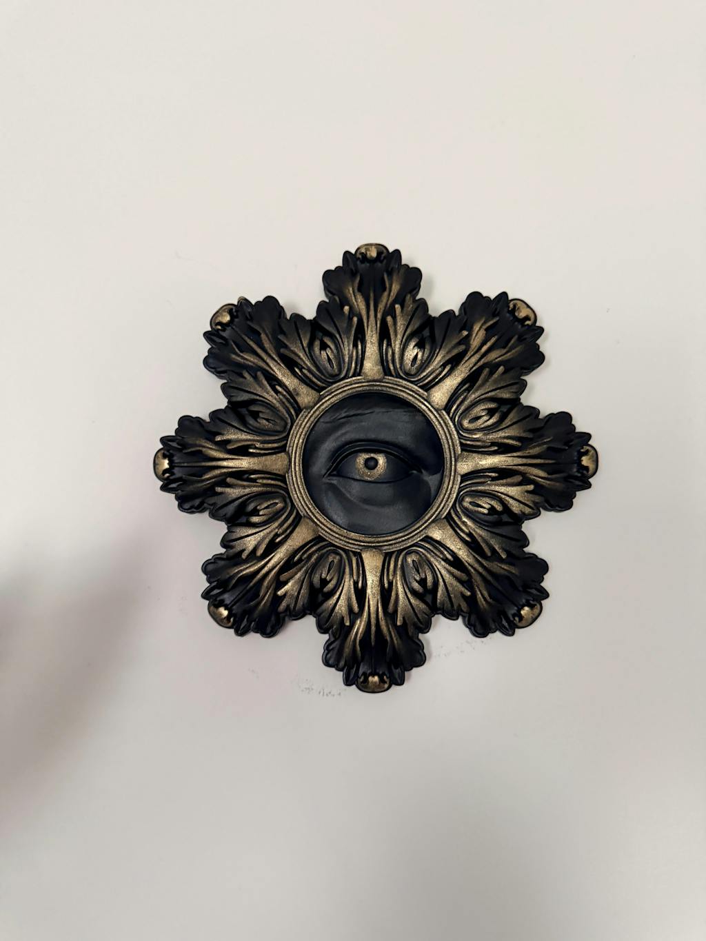 A beautiful baroque-style plaque with a detailed and alluring eye design at the centre. Handcrafted in black resin with a dusting of gold to bring to life the intricate details. A perfect addition to any gothic gallery wall.