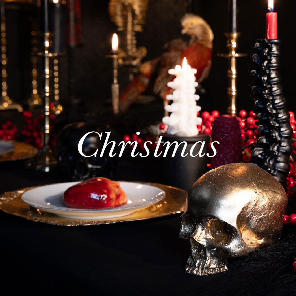 The 2025 Christmas collection has arrived! We've curated and created a collection of Christmas pieces that will compliment your gothic decor this Christmas. From Christmas tableware to cute, creepy and unique gifts for the most strange and unusual members of the family!