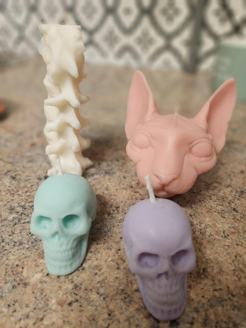 A selection of The Blackened Teeth Candles shown in the photographs.