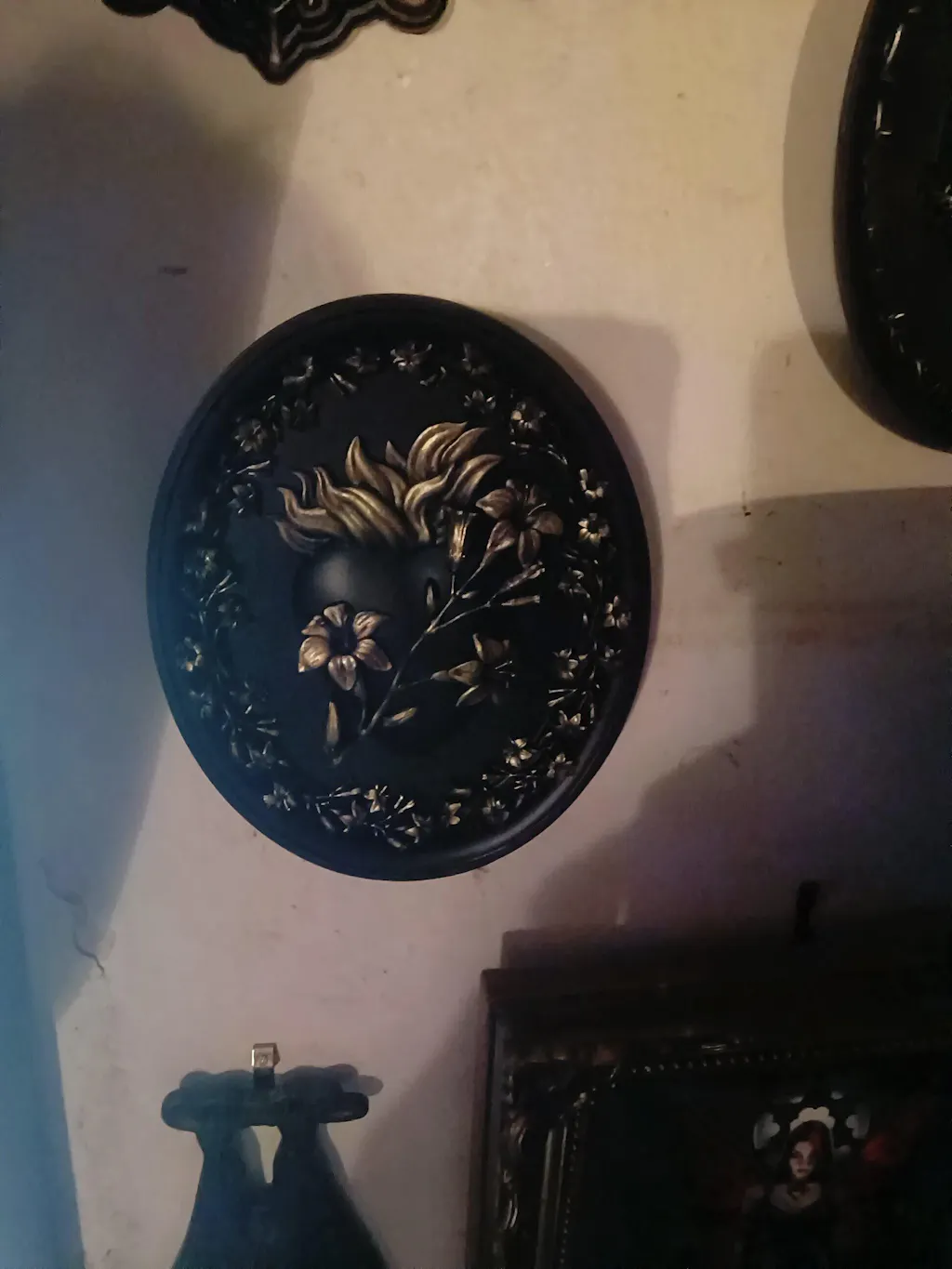 The Sacred Heart Wall Plaque - Lily Edition in Blackened Gold.