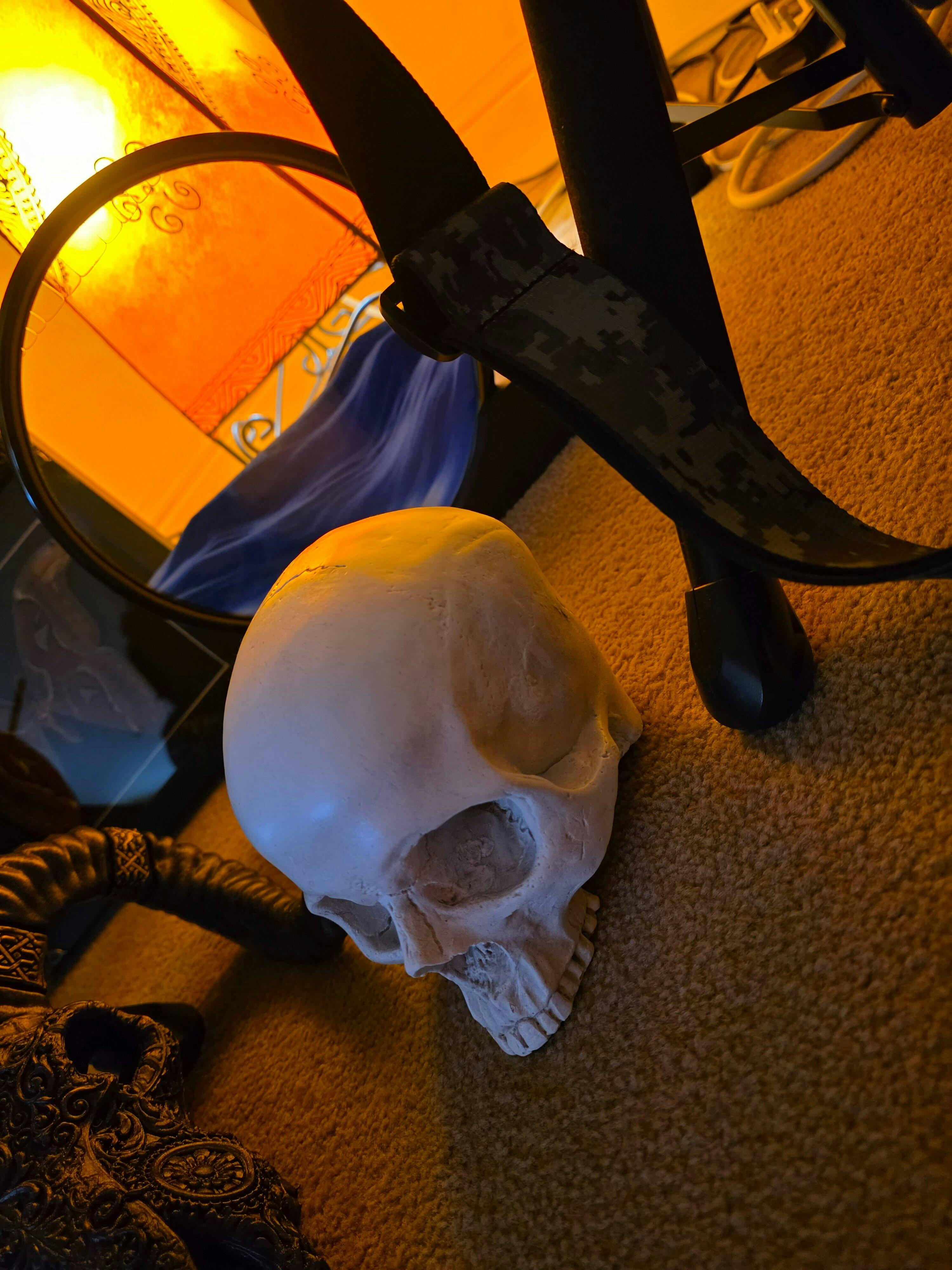 Materials: Skull is made from solid high strength casting plaster. Hand painted and sealed.