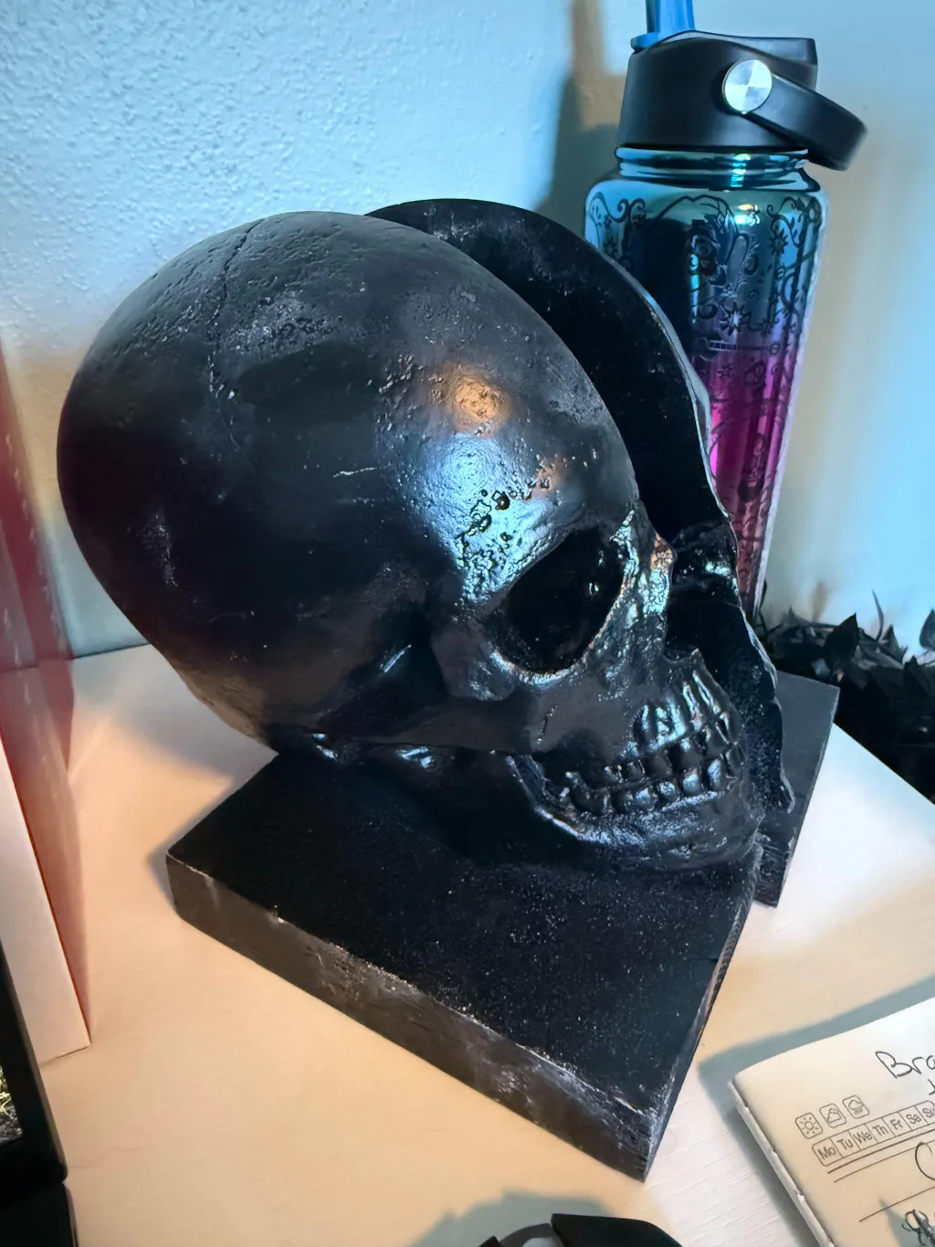 Handmade Skull Bookends (pair) to hold books on a bookcase or free standing.
