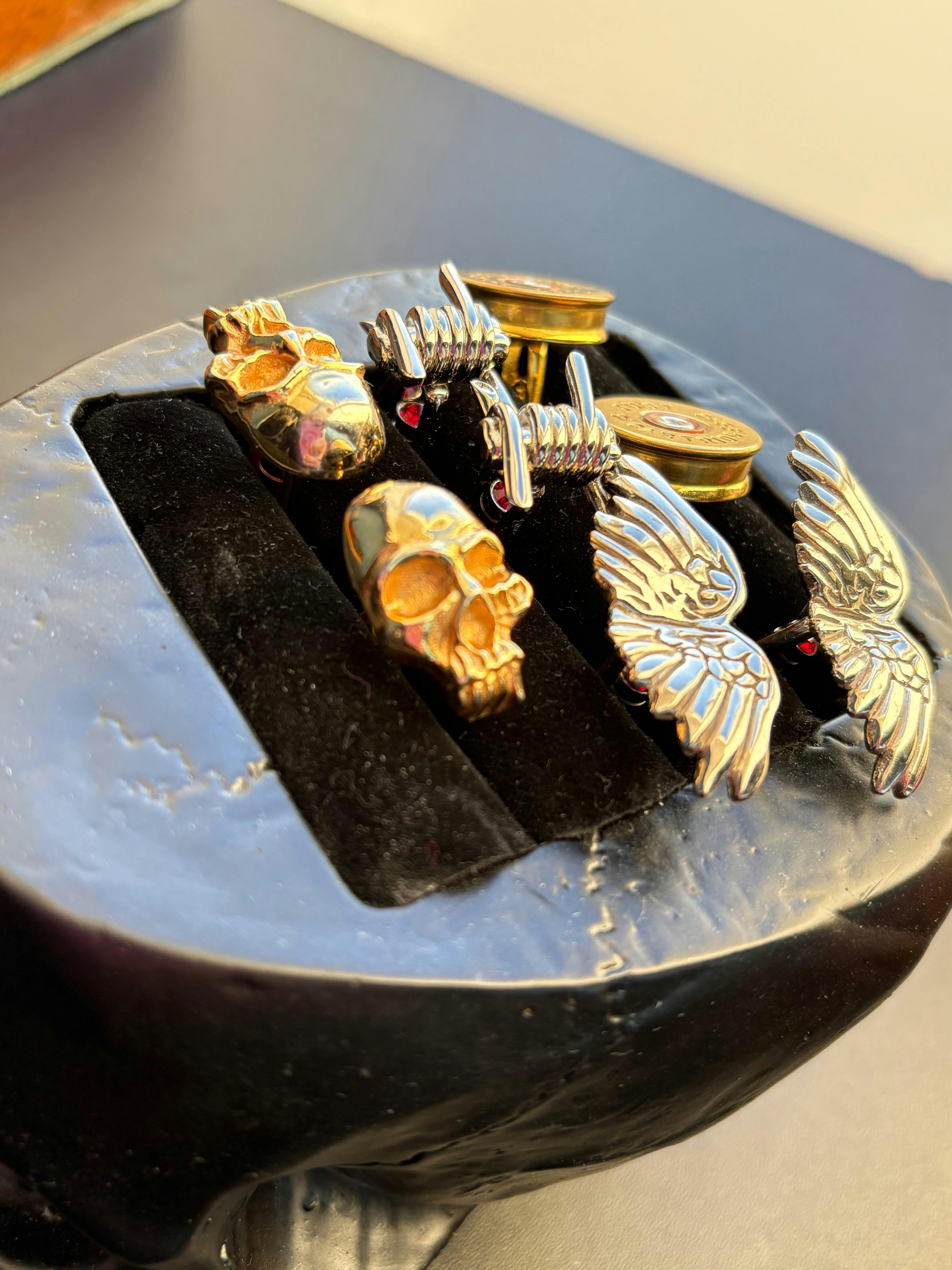How else would you display a stunning gothic ring collection; other than in the head of a (replica) human skull?