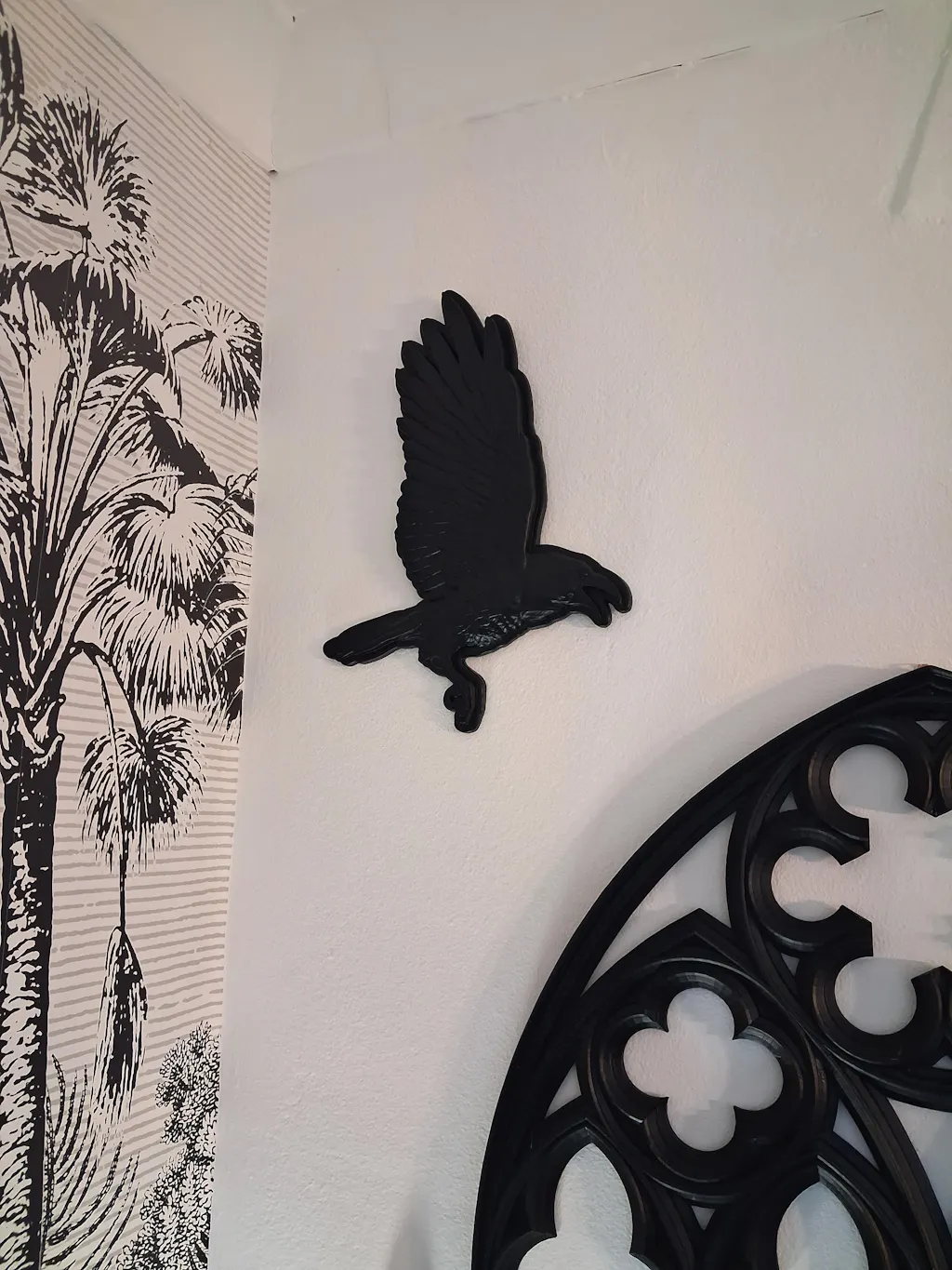 Cast in striking black detail, these wall hangings embody mystery, remembrance, and the beauty found in darkness. Collect and display them together as a poetic trio, or let each bird take wing on its own, a reminder that even in sorrow, there is art.