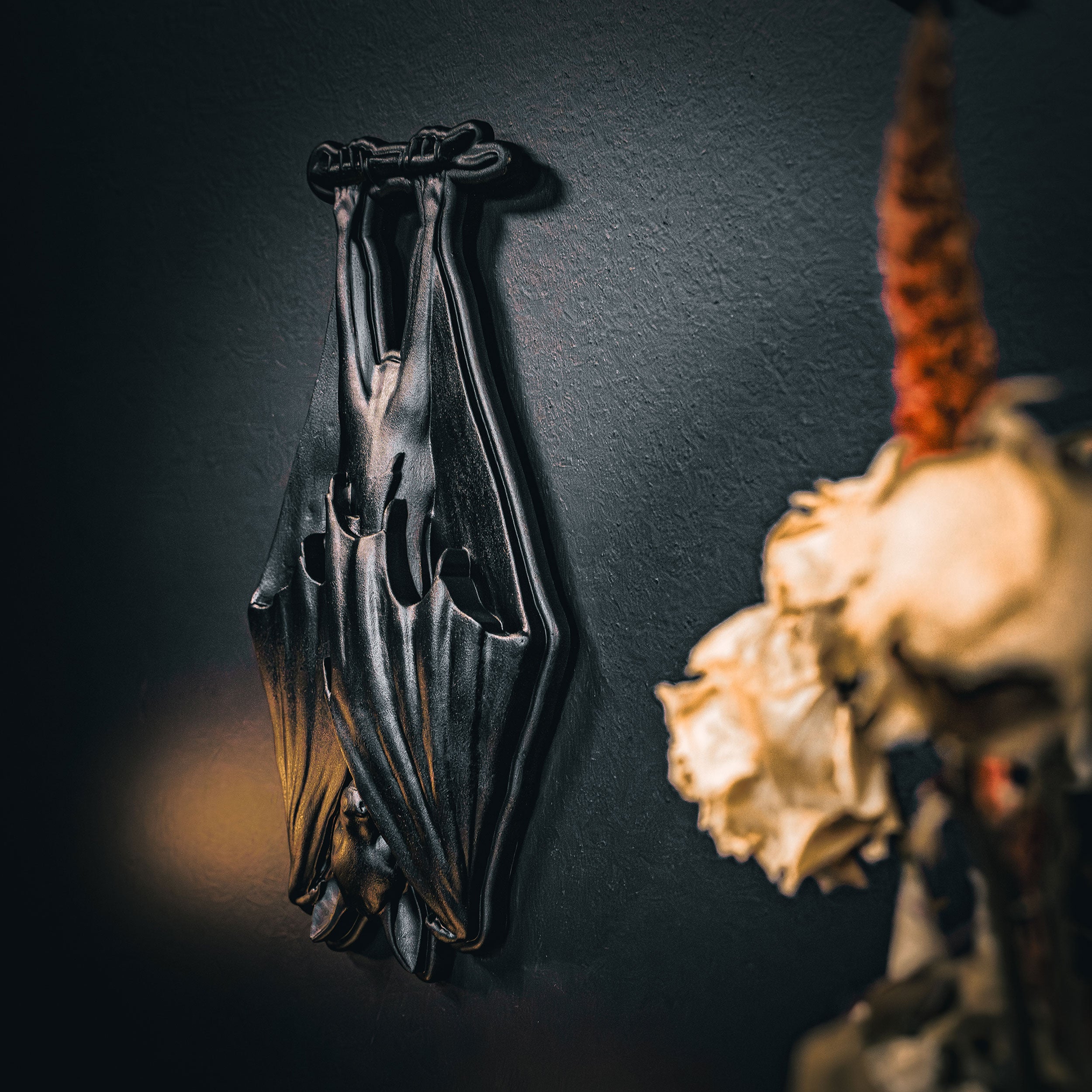 Drax the upside down bat wall hanging. Adorn your gothic gallery wall with our bat wall plaque that exudes dark elegance. Add it to your collection and give a whole lot of love to your living resting place.