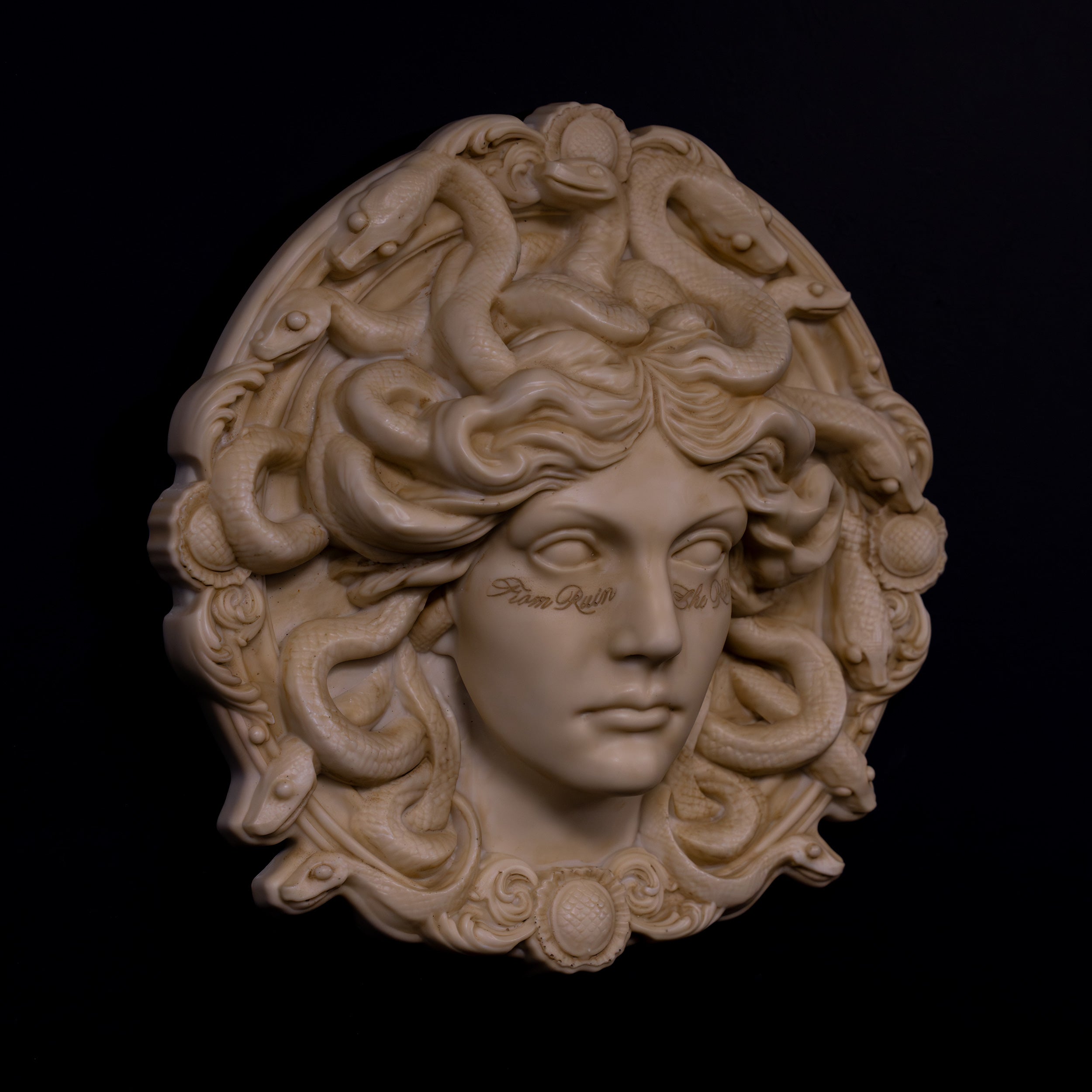 The Medusa Wall Sculpture captures Medusa in a moment of solemn calmness.