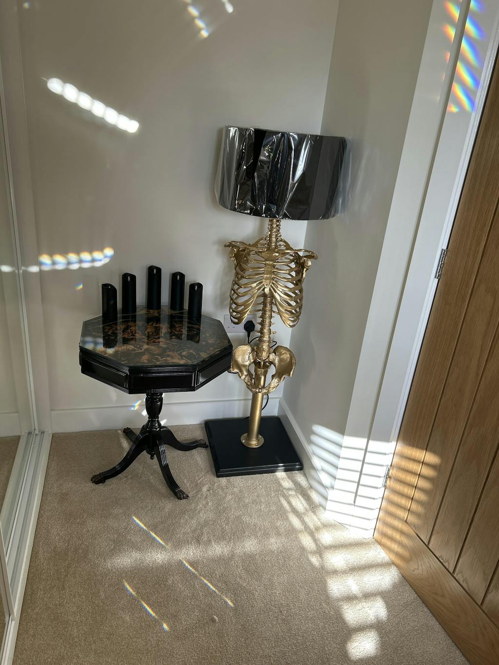 - Colour: Gold Skeleton & pole. Black wooden base.